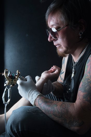 Otra cosa que tiene muy clara es que “todo aquel que lleva un tatuaje siempre será una persona que está loca. Eso será toda la vida”, matiza Christian, y recuerda: “trabajamos con sangre”. Tal vez no exa­gere si pensamos que a un tatuador se le da confianza para dejar una marca de por vida, una identificación, un recuerdo im­borrable en la piel... a costa de pasar varias horas en la misma posición mientras una aguja perfora la dermis. ¿Será que para ello hay que estar loco?
