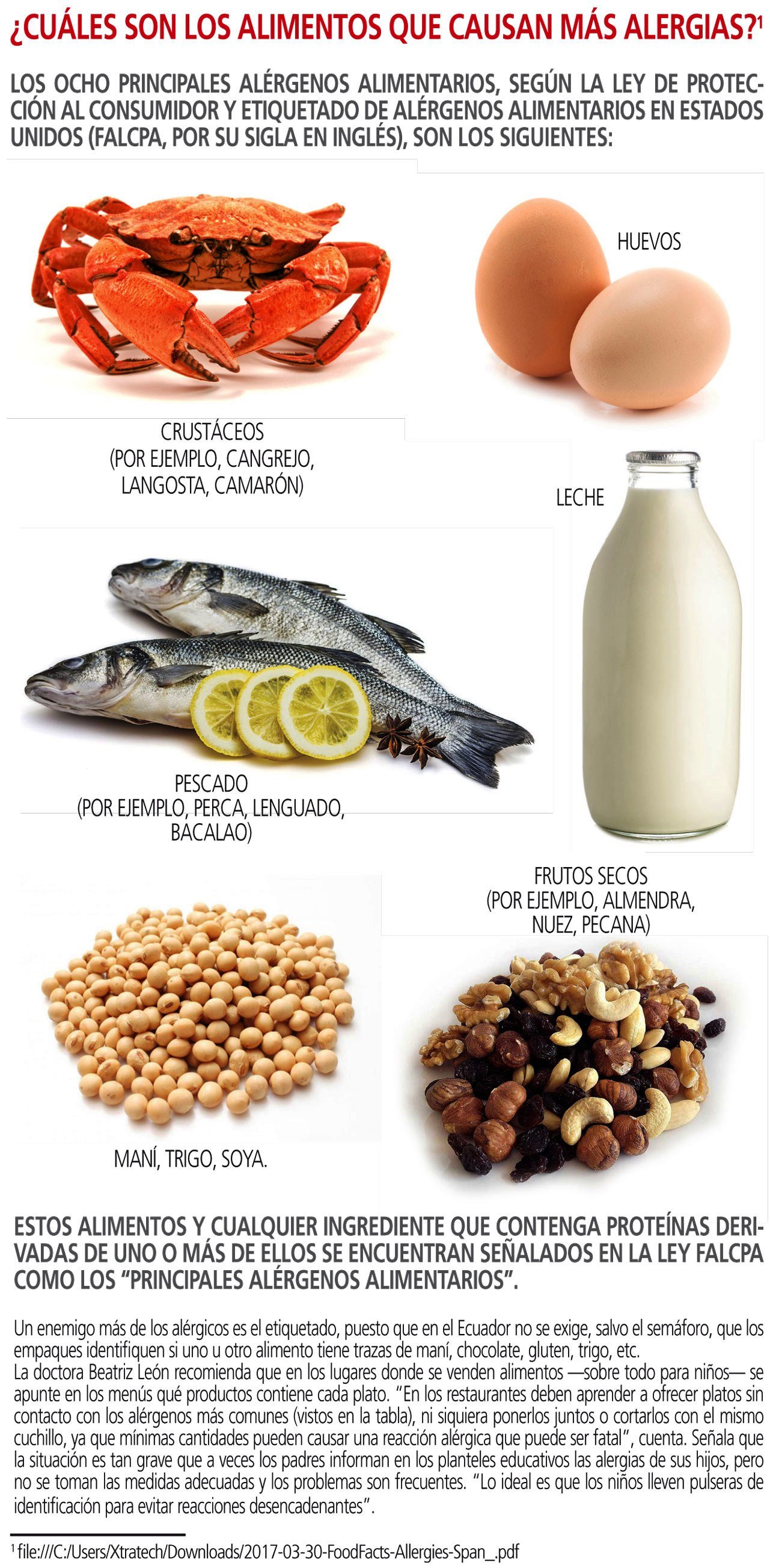 Mateo Ruiz tomó leche materna hasta sus seis meses de edad y su madre le suministró todos los cuidados necesarios en sus primeros años de vida. Sin embargo, cuando empezó a ir a la guardería y los niños hacían sus fiestas de cumpleaños Mateo se ponía muy mal, sus manos y boca se hinchaban y enronchaban. Entonces, su madre lo llevó a la alergóloga Beatriz León. La especialista en niños realizó múltiples pruebas hasta determinar que el pequeño tenía una alergia al colorante rojo 4, que está en algunos caramelos y especialmente chupetes. Cuando la madre de Mateo identificó cuál era el causante, avisó de esto al centro escolar, familiares y amigos, con el fin de que Mateo no entrara en contacto con comidas o gaseosas de ese color. “Es impresionante cómo los niños aprenden a evitar y a preguntar a quienes les ofrecen alimentos si es que contienen aquello que les causa daño”, señala León.