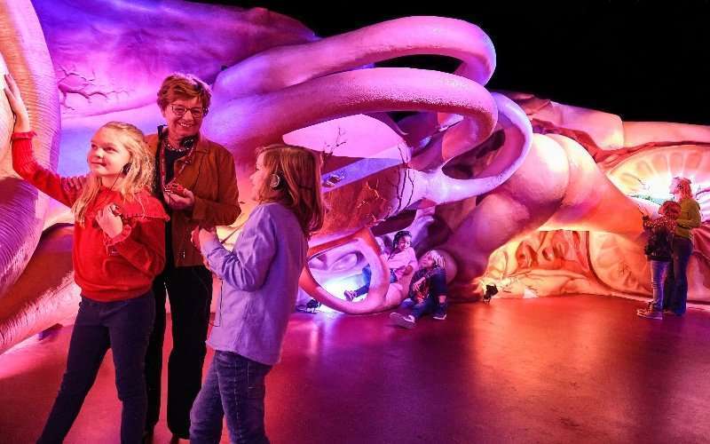 Similares salas muestran de forma lúdica el funcionamiento del corazón, pulmones, la boca, la nariz y los oídos. Incluso, los niños pueden saltar sobre una lengua gigante.
