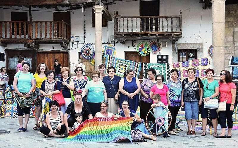 Quienes están más implicadas en el proyecto son personas jubiladas, que durante el invierno se dedican a tejer para presentar sus obras textiles en verano. “Esta actividad se manifiesta en el espacio público y es una iniciativa en la que se elaboran las piezas a mano y se reutilizan plásticos para elaborar estructuras ligeras e impermeables que se cuelgan en las calles del pueblo”, cuenta Marina en un foro de la Asociación Creadores Textiles de Madrid.
