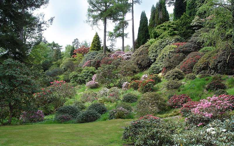 Una impresionante avenida de secuoyas da la bienvenida al jardín, ubicado en la ladera de una montaña, a la entrada del Parque Nacional del lago Lomond y los Trossachs. Sus 49 hectáreas albergan una vasta colección de plantas de Asia, principalmente del Himalaya, y de América del Norte y del Sur.