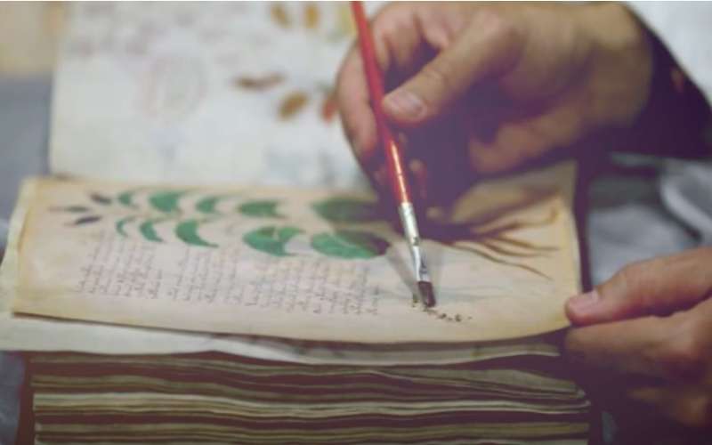 Otras páginas muestran una elaborada serie de medallones cosmológicos, más de 100 dibujos de especies diferentes de hierbas medicinales y páginas continuas de texto, posiblemente recetas, con flores en formas de estrellas en los márgenes. Este texto encriptado ha sido el foco obsesivo de estudio en todo el mundo desde hace más de 50 años. Ninguno de los mejores criptógrafos del mundo han podido descifrarlo.