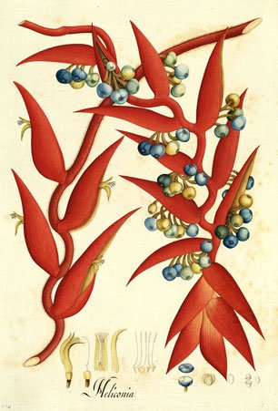 Pintores---5Aunque no tengo mayores elementos de juicio, es muy probable que Mejía fuese el que sugirió los nombres de Cortés y de Rodríguez como encargados de reclutar a los artistas. Hay que tener presente que él fue el candidato propuesto por Caldas para dirigir la que debía ser la Flora Quitense, una función que no pudo desempeñar ya que coincidió con su viaje a España. En realidad se trataba de un grupo de jóvenes pintores que todavía no habían alcanzado la fama de los consagrados. Tal como era común en la época, formaban parte de la plantilla de artistas al servicio de las máximas figuras. Normalmente eran los que en su fase de aprendizaje se dedicaban a pintar los motivos secundarios de los cuadros y minucias en donde el maestro no entraba. De todas formas la calidad de sus trabajos nunca se puso en entredicho, sino todo lo contrario: las alabanzas y los elogios vinieron entre otros de Caldas y del mismísimo Humboldt. “Los mejores pintores —decía Caldas— han nacido en este suelo afortunado. La familia Cortés está inmortalizada en la Flora de Bogotá… Los hijos de Cortés, Matiz, Sepúlveda no habrían salido de Quito de la clase pintores comunes, pero al lado del Sabio Mutis, en quien hallaron a un tiempo padre celoso de la pureza de sus costumbres, un director de su genio y un admirador de sus talentos”. Humboldt por su parte declaró que “jamás se había hecho una colección de dibujos más lujosa y en una escala tan grande”. Los trabajos rutinarios de los pintores se mantuvieron regularmente hasta la muerte de Mutis en el año de 1808. Trabajaban nueve horas al día de lunes a sábado y “guardando profundo silencio en la oficina, en su lugar respectivo, cada uno se ocupaba de dibujar… el jornal se pagaba cada semana deduciendo lo que cada cual había perdido por sus faltas no justificadas a juicio del director”. Los colores utilizados se extraían de plantas y de minerales indígenas de la zona y que eran desconocidos en Europa. La muerte de Mutis generó múltiples conflictos y fricciones que terminaron por alejar a los quiteños del proyecto. Por lo visto, no gustó que el reemplazo recayera en Sinforoso Mutis, el sobrino del sabio. La empresa tocó a su fin con motivo de los acontecimientos de las guerras de la Independencia. El general Morillo, que había sido enviado a sofocar las revueltas de los patriotas, dio por terminada la empresa y remitió las láminas a España, un total de 6 617. Aún hoy reposan en el archivo del Jardín Botánico de Madrid.