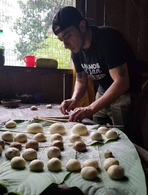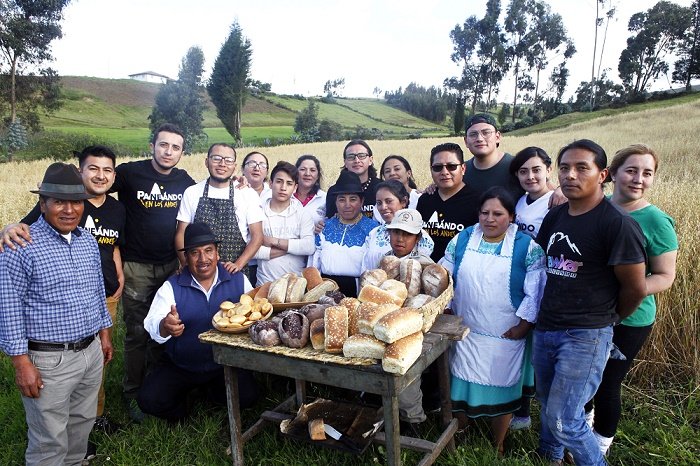 Es mediados de mayo de 2019 y el grandioso sol de la serranía hace centellear los sembríos de trigo y cebada que contornean la comunidad de Chilco, en la provincia de Imbabura. Diego Suárez ha venido acompañado de un grupo de cocineros, pasteleros y aficionados al pan para desarrollar un nuevo capítulo de Paneando, proyecto por el que tiene un especial afecto y que consiste en visitar localidades de escasos recursos del Ecuador para, en conjunto con los habitantes, preparar panes con ingredientes locales y desarrollar una línea comercial que les permita generar ingresos. En febrero estuvo en Secoya Remolino, una pequeña comunidad en la provincia de Sucumbíos, para el capítulo Paneando en la Amazonía, y ahora es la ocasión del Paneando en los Andes. “Normalmente nosotros hacemos el pan con levadura comercial y mantecas” —dijo Diocelina Churuchumbi, presidenta de Chilco—, “pero ahora hemos aprendido mucho con las masas madre y todos los cereales que tenemos. Con estas enseñanzas esperamos sacar adelante el turismo en esta zona”.