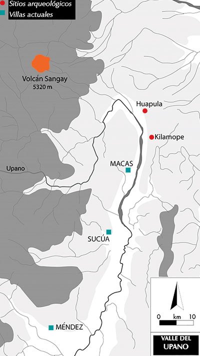 Uno de los avances más importantes en tecnología para investigar vestigios arqueológicos en el país tiene que ver con una nueva tecnología. Gracias a ella se han podido verificar algunas hipótesis de uno de los sitios más enigmáticos encontrados en la Amazonía ecuatoriana: Upano. Ya el padre Porras y Ernesto Salazar, en los años ochenta, hablaban de montículos de tierra, plazas, canales y caminos distribuidos en un modo espacial preciso, que apenas podían notarse por estar cubiertos de vegetación. Stephen Rostain, a cargo del proyecto arqueológico Sangay-Upano/río Blanco, realizado entre 1996 y 2003, establece una secuencia cultural del valle del Alto Upano, desde 700 a. C. hasta nuestros días. “Los primeros habitantes del valle pertenecieron a la cultura Sangay. Entre 500 y 200 a. C., las comunidades de la cultura Upano edificaron complejos de montículos a lo largo de los barrancos. Progresivamente, la cerámica Upano, caracterizada por la decoración de bandas rojas entre incisiones, fue reemplazada por la cerámica de estilo Kilamope. Hacia 400-600 d. C., los habitantes huyeron del valle a causa de una fuerte erupción del Sangay. Entre 800 y 1200 d. C., grupos de la cultura Huapula ocuparon algunos de los montículos preexistentes. Son los antepasados de los jívaros actuales que siguen viviendo ahora en la región”, publica en el boletín del Instituto Francés de Estudios Andinos.